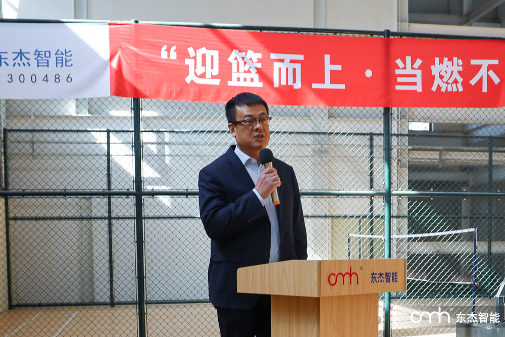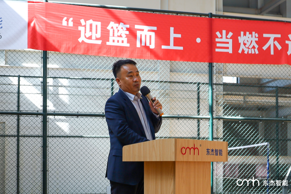 王總在隨后的講話中滿懷激情地講到:“迎籃而上·當燃不讓”這八個字,生動詮釋了我們東杰人敢打敢拼、追求卓越的精神。籃球場上的每一次進攻都需要五個人齊心協力,企業發展同樣需要各部門緊密配合、攜手并進。希望參賽隊員們在比賽中展現出的激情與斗志,能夠轉化為工作中的創新動力和協作意識。"王總特別強調,"東杰智能始終致力于為員工打造實現價值的舞臺,未來我們將繼續完善人才培養機制,通過豐富多彩的文體活動和職業發展通道,讓每一位員工都能在這里收獲成長、成就夢想。"