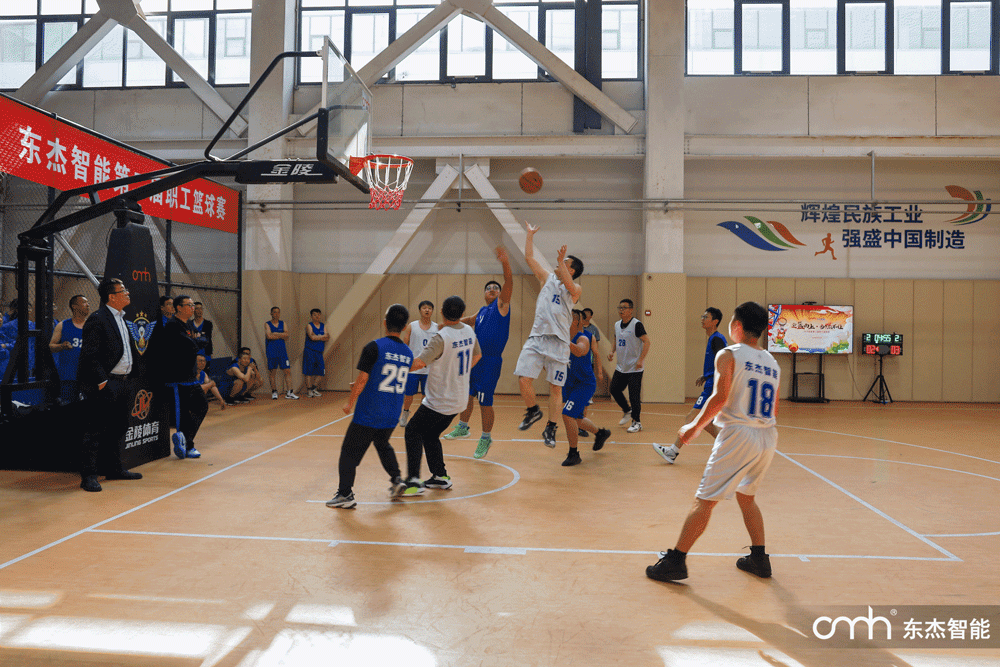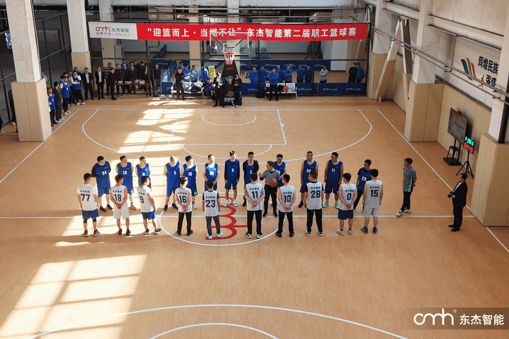 隨著裁判長一聲哨響,籃球被高高拋向空中,東杰智能第二屆職工籃球賽正式開賽。現場頓時響起熱烈的掌聲和歡呼聲,氣氛瞬間達到高潮。雙方中鋒同時起跳爭球,比賽在激烈的對抗中拉開序幕。