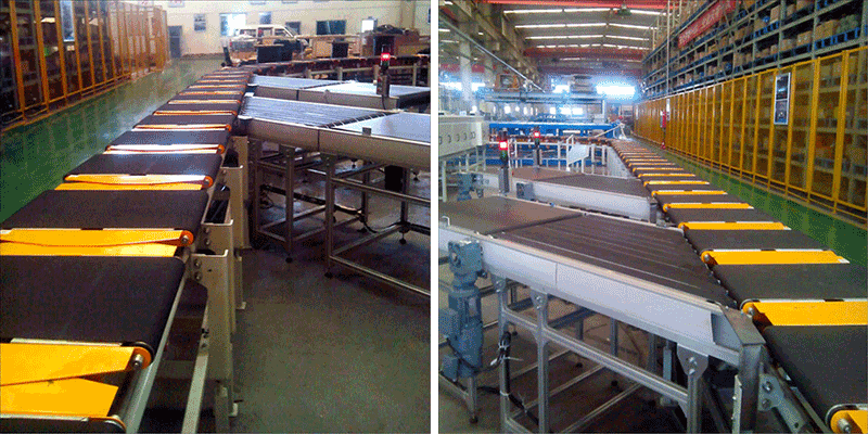 交叉帶分揀機的分揀動作由“小車”完成,當“小車”移動到所規定的分揀位置時,轉動皮帶,完成把商品分揀送出的任務。因為直線電機主驅動與“小車”上的帶式輸送機呈交叉狀,故稱交叉帶分揀機。因為不受物品重量、尺寸以及摩擦系數的影響,提高了處理物品的范圍、擴大上包通道、加快卸包速度、縮短入格距離、靈活設計格口寬度、實現準確、平穩作業處理等特點。