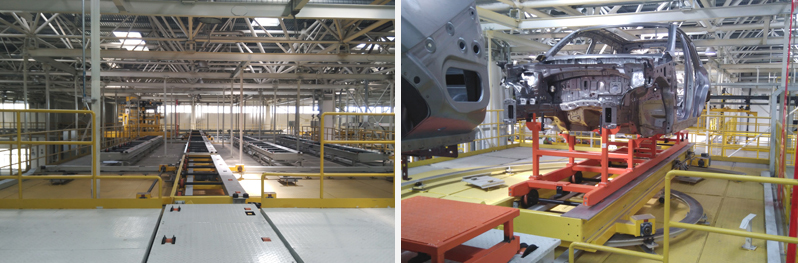 華晨汽車集團控股有限公司華晨焊裝滑撬輸送生產線,本輸送生產線包括:通空撬儲存、車身存儲、主車身生產線升降機及車身調整線等,最終將合格車身通過轉接工位輸送至涂裝車間。輸送線配置有CS控制系統,實現實時監控現場設備、車身儲存區出入車輛調度、設備故障報警提示等功能。通過物流信息的分析、整理,實現了車輛信息化管理。