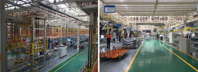 晉中吉利總裝為我公司總承包項目,包括PBS線、內飾裝配線、底盤線、最終裝配線、車門線、OK線、淋雨線、商檢線、發動機分裝等,也包括工藝吊架及照明、KPK、工藝二次管線、全車間供電系統、全系統集成。輸送線配置有CS控制系統。同時配置有信息管理系統。車型信息控制總體功能:PBS線車身信息通過超高頻電子標簽進行管理,為確保系統運行可靠,在轉掛處都設有12寸觸摸屏,也可人工錄入車型信息,錄入采用無線條碼掃描槍掃取整車流程卡條碼。整體配置有ANDON系統、AVI系統等。